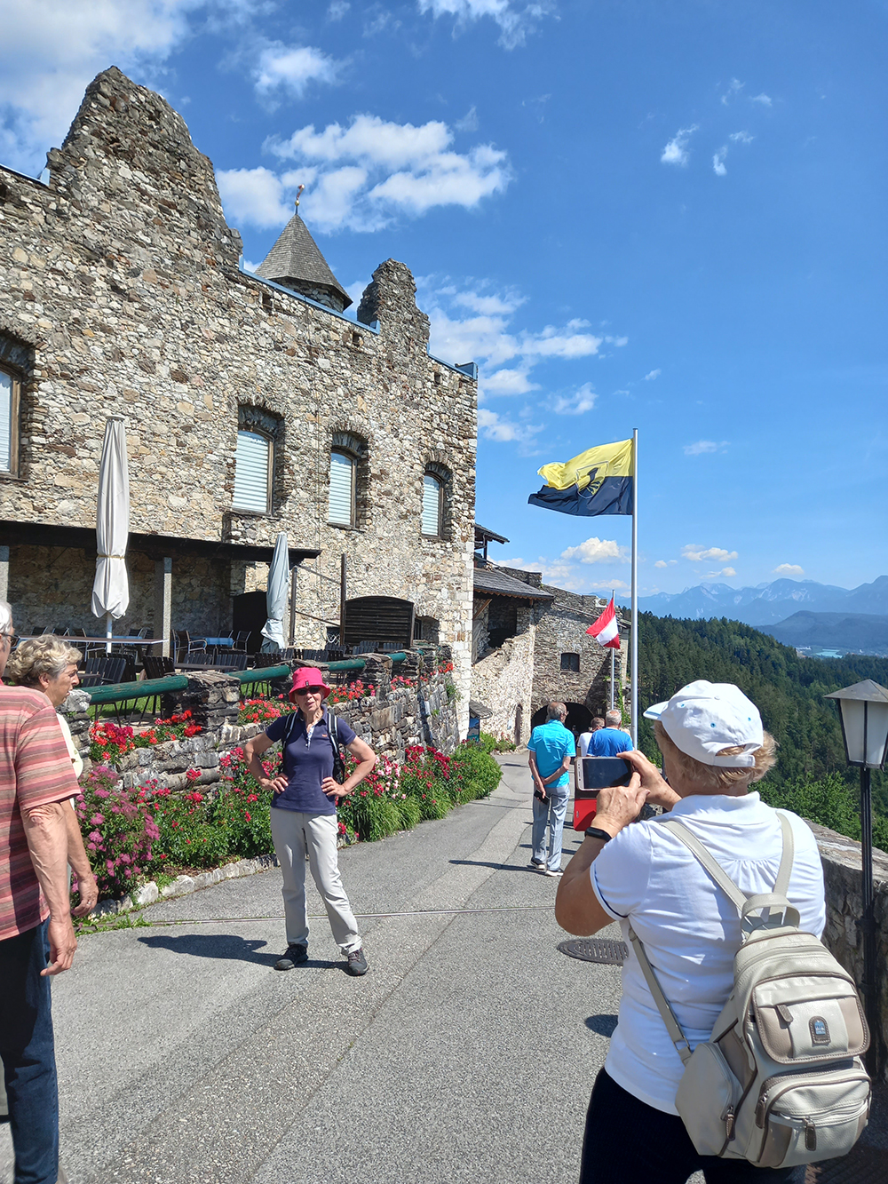 Po zanimivem doživetju smo se povzpeli do gradu Landskorn, kjer se je odprl čudovit pogled proti Beljaku in si ogledali velike orle, ki so pridno ubogali svoje dreserje.